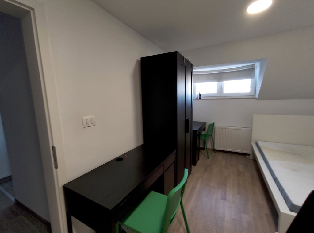 Stanovanje se nahaja na mirni lokaciji in se oddaja opremljeno. Oddaja se ena postelja v dvoposteljni sobi. Najemnik ima ostale prostore (hodnik, kuhinja, kopalnica) stanovanja v souporabi z ostalimi stanovalci. V sobi se nahajata dve enojni postelji, dve garderobni omari ter dve pisalni mizi.