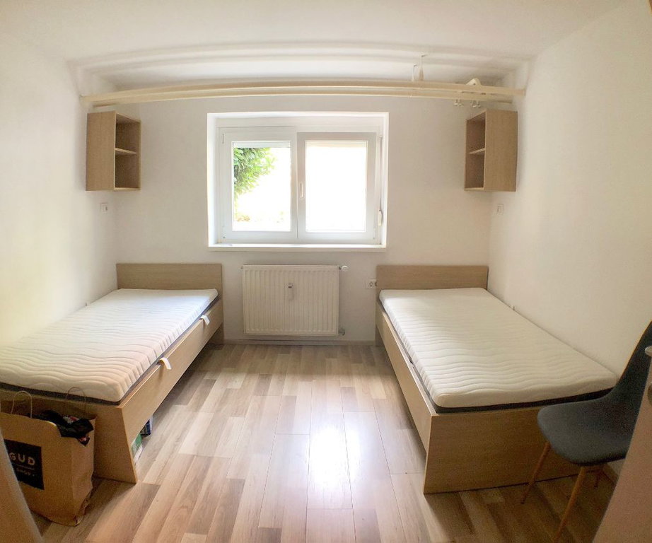 Stanovanje se nahaja na mirni lokaciji, 10 min hoje do centra mesta in se oddaja opremljeno. Oddaja se ena postelja v dvoposteljni sobi, najemnik ima ostale prostore (hodnik, dnevno-bivalni prostor, kuhinja, kopalnica) stanovanja v souporabi z ostalimi stanovalci. V sobi se nahajata dve enojni postelji ter dve garderobni omari.