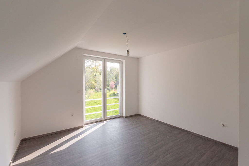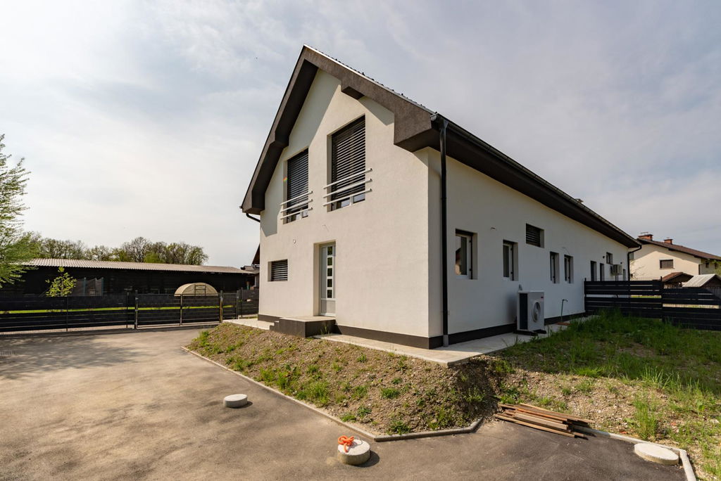 Prodamo enoto dvojčka, ki stoji na parceli 370 m2 in ima 143,20 m2. Hiša je bila na ključ zgrajena 2023-2024.