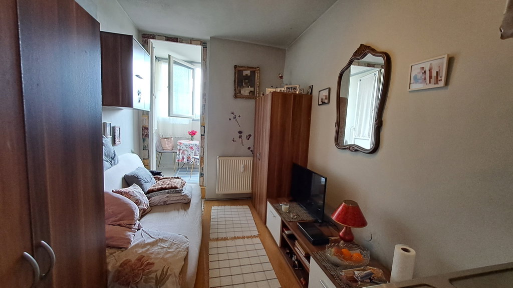 Udobje in praktičnost: Soba je razdeljena na bivalni del in zagrajen balkon, wc in kopalnica sta v souporabi,