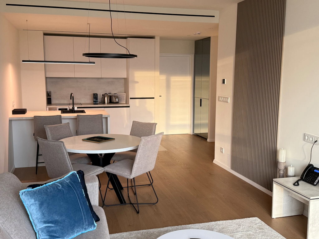 V ponudbi je stanovanje v velikosti 65,30 m², ki vključuje tudi lastno parkirno mesto. Odlikujejo ga odprt tloris, prefinjena notranja oprema in prekrasni razgledi. Stanovanje se prodaja v celoti opremljeno, v sodobnem mediteranskem slogu.