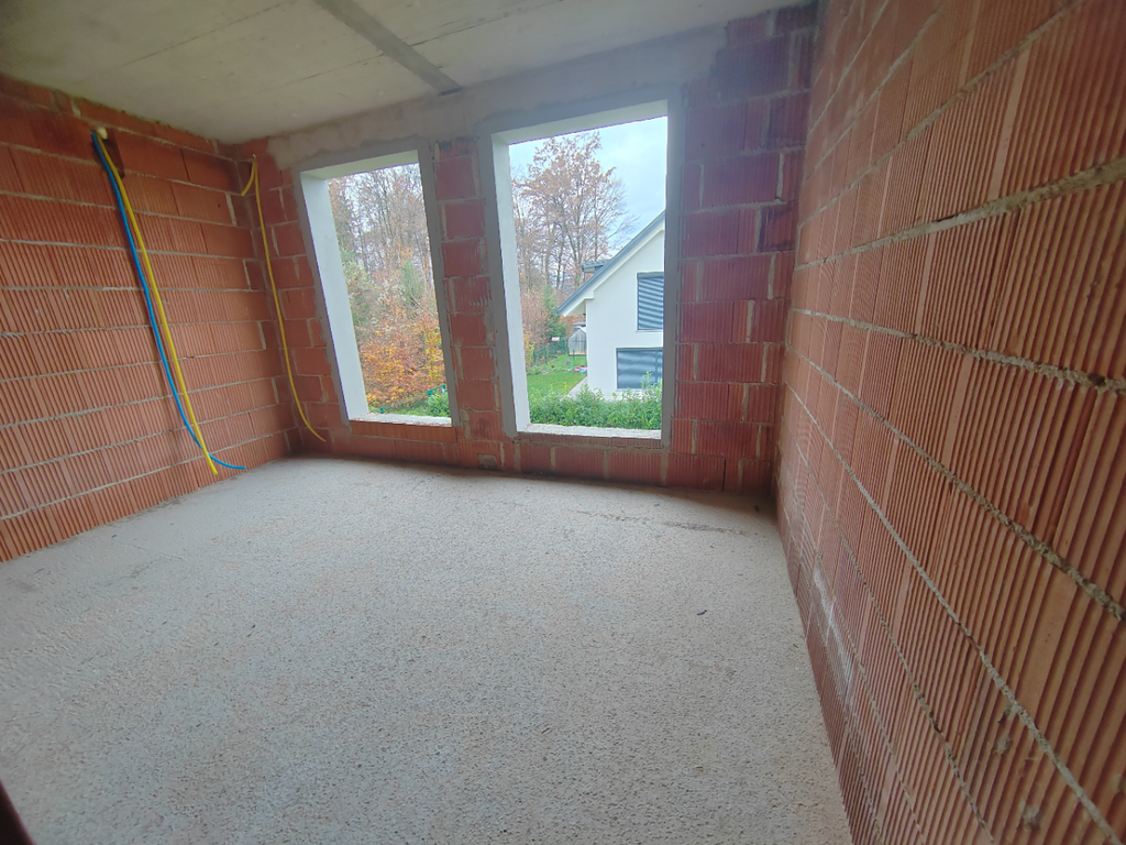 Mansarda: večja soba – spalnica 15,4 m² ter večnamenski prostor 38 m², ki omogoča ureditev dodatnih sob, domače pisarne, fitnesa…