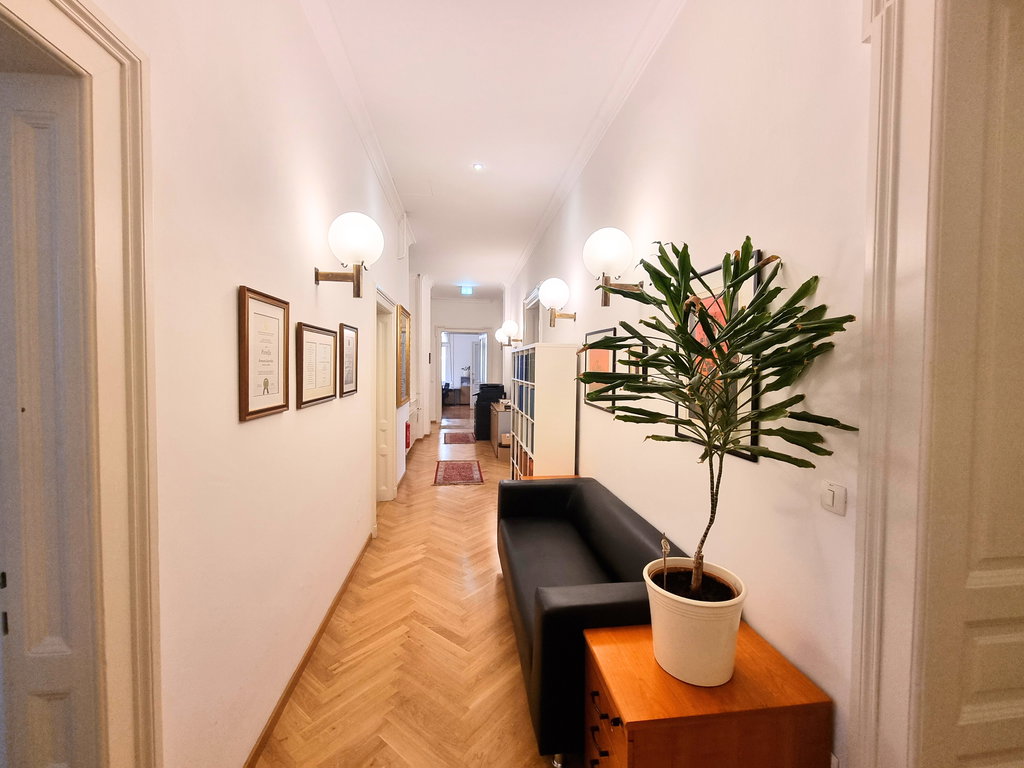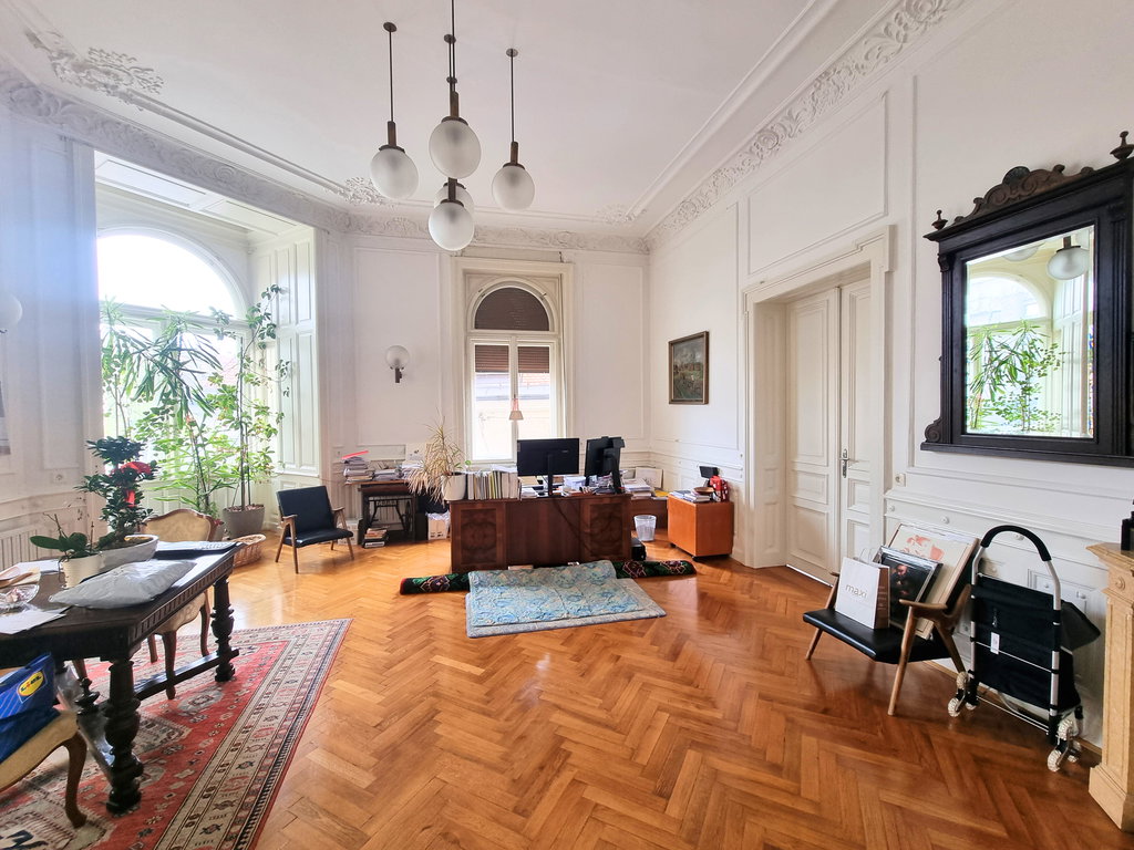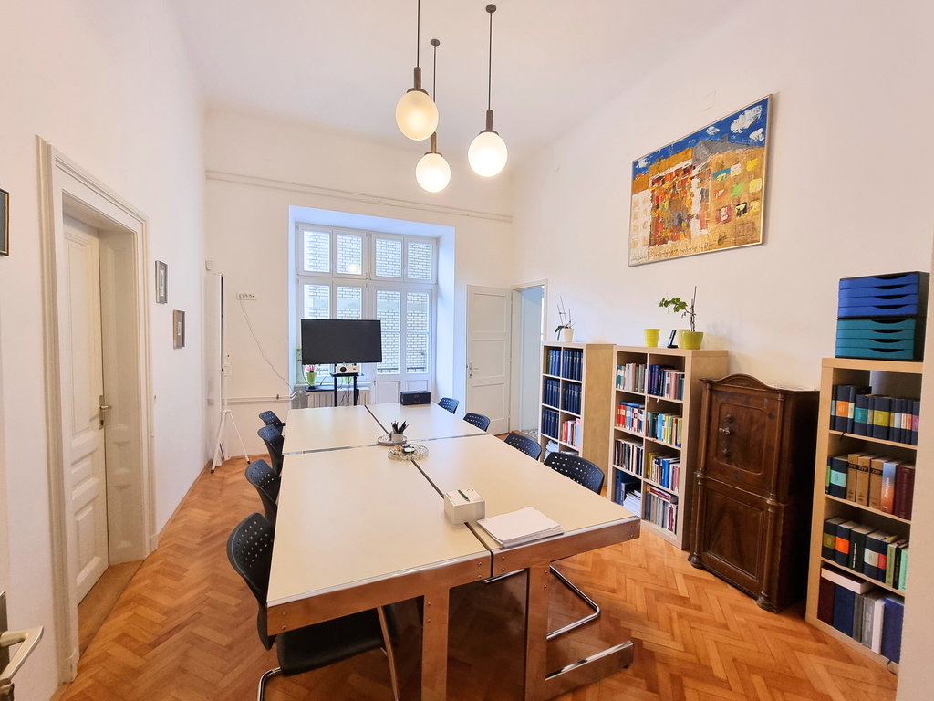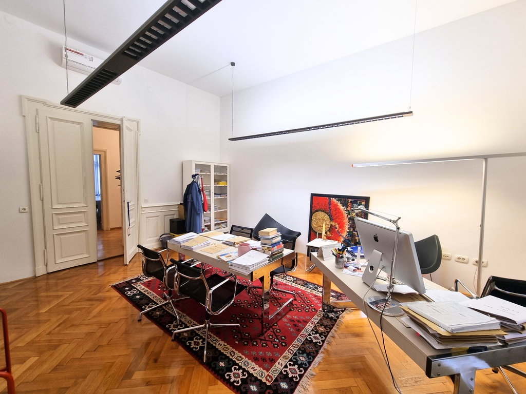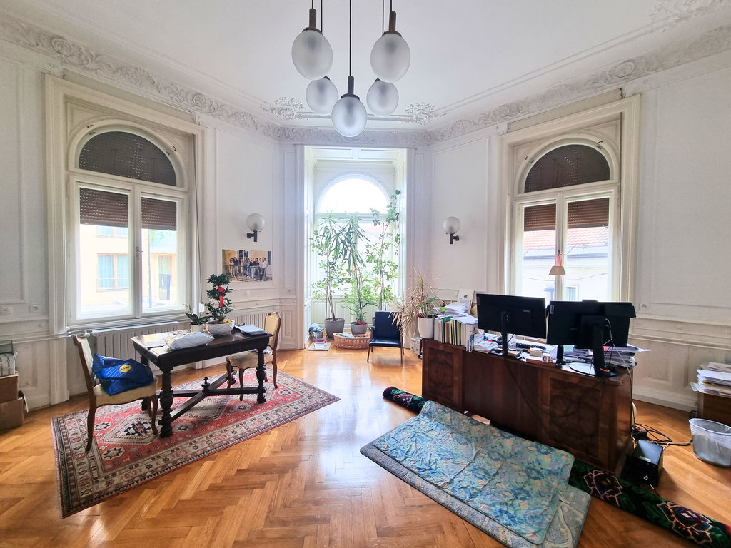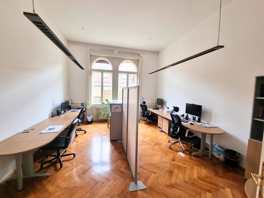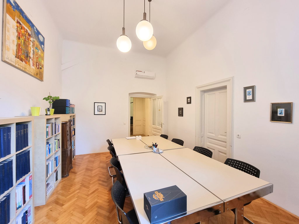 Na izjemni lokaciji v središču Ljubljane, na Dalmatinovi ulici, se oddajajo prostrane in svetle staromeščanske pisarne v prvem nadstropju reprezentančne stavbe.