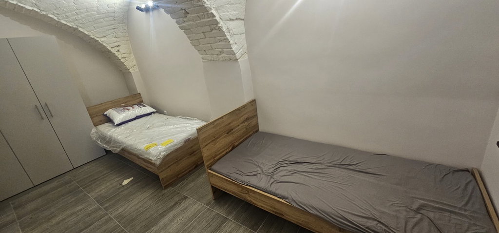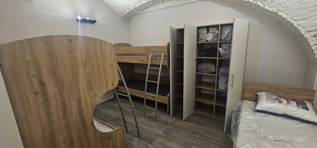 Stanovanje vsebuje: 2x velika spalnica v kateri so nameščeni pogradi, omare z vso novo posteljno opremo (jogi, vzglavnik, posteljne prevleke), 1x dnevni prostor, ki je namenjen skupni rabi, 2x kopalnica (tuš, WC), 1X ločen WC.