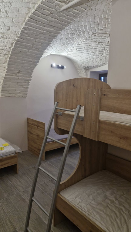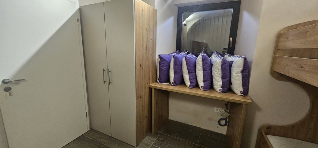 Stanovanje vsebuje: 2x velika spalnica v kateri so nameščeni pogradi, omare z vso novo posteljno opremo (jogi, vzglavnik, posteljne prevleke), 1x dnevni prostor, ki je namenjen skupni rabi, 2x kopalnica (tuš, WC), 1X ločen WC.