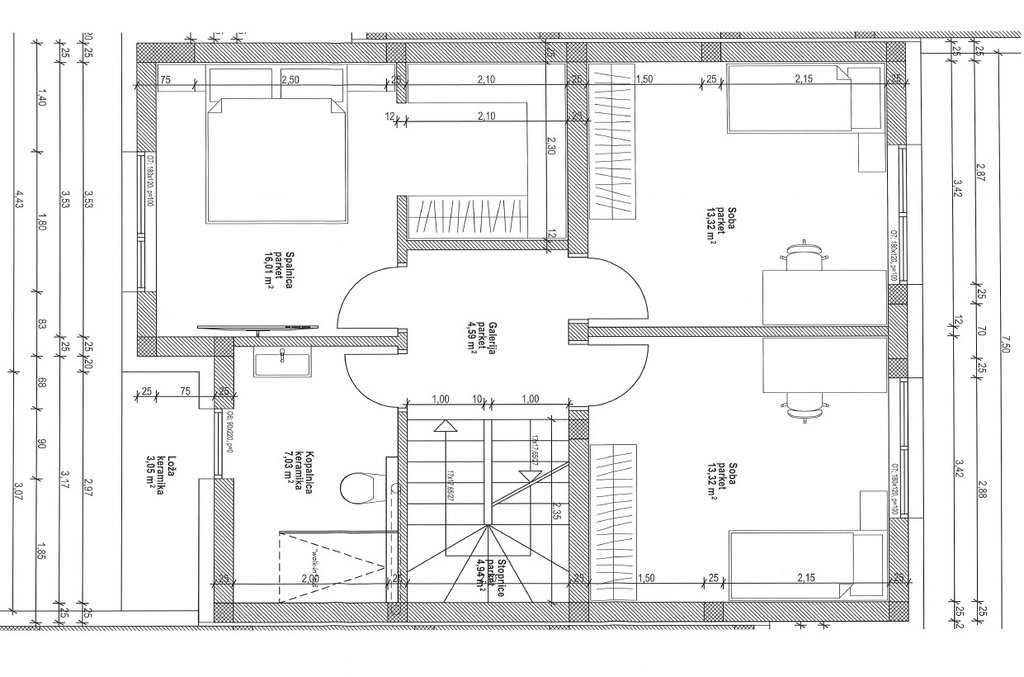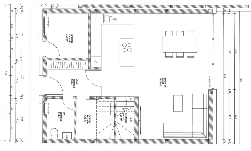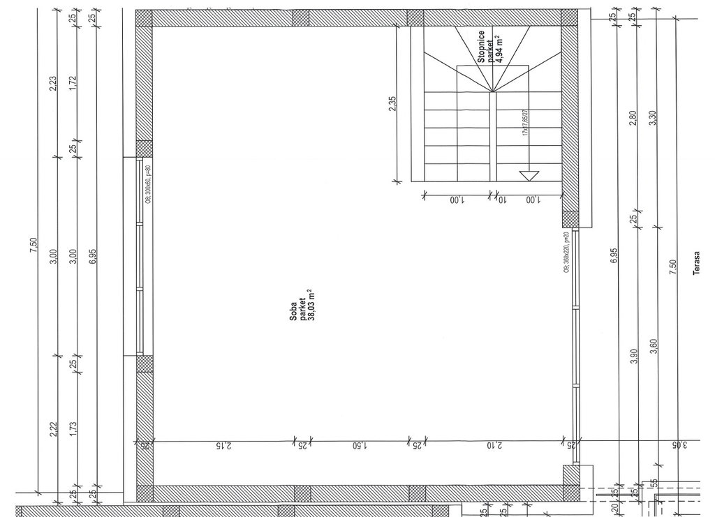 Bruto dimenzije objekta: 7,50 m x 10,00 m
