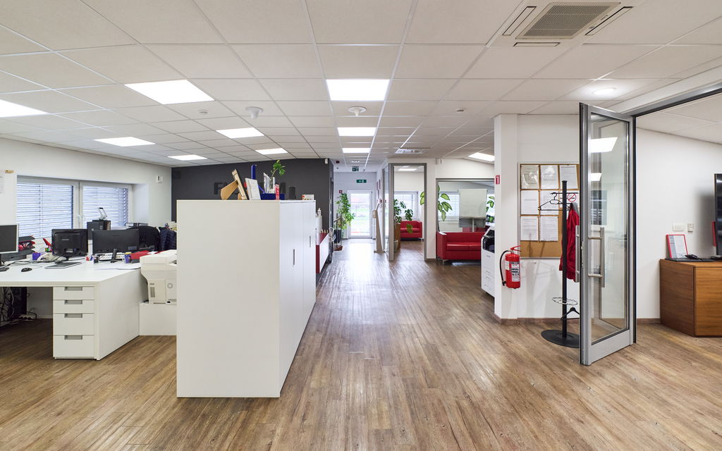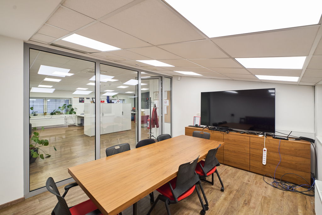 Raznolike, premišljeno zasnovane razporeditve: samostojne direktorske pisarne, več sejnih sob, odprte delovne površine (open‑space) — enostavno prilagodljivo poslovnim potrebam.