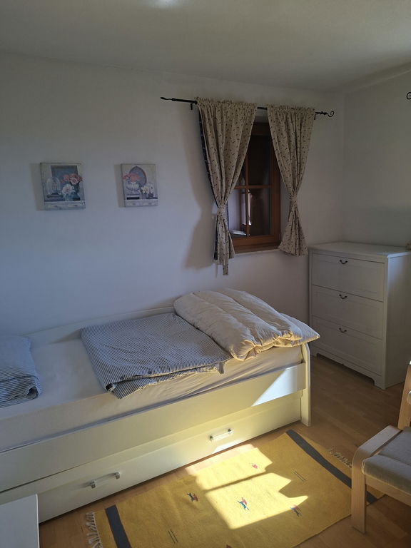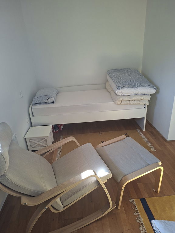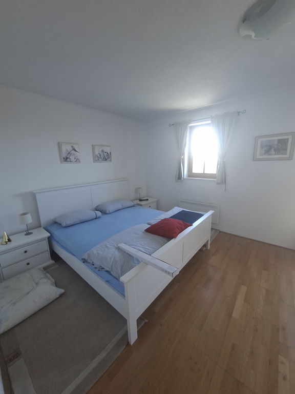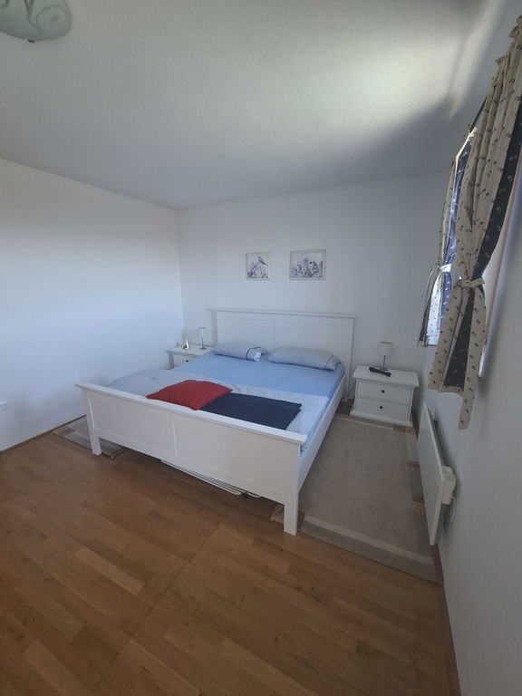 Druga etaža vsebuje dve spalnici, ena z izhodom na balkon, kopalnico in hodnik. Etaži sta povezani z stopniščem.