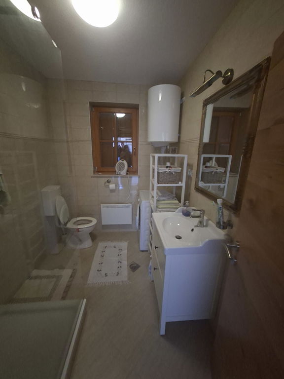 Ogrevanje R paneli in kamin. Čistilna naprava, javni vodovod.